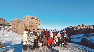 搭客在草原石城合影迷恋。记者 古扎丽·阿布都热西提 摄